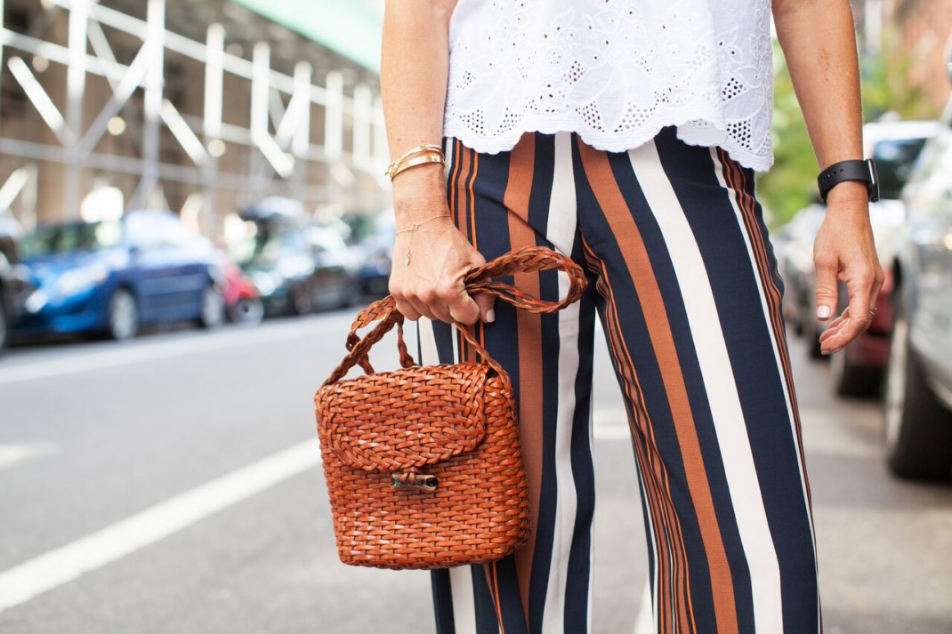 striped pants / vintage bag